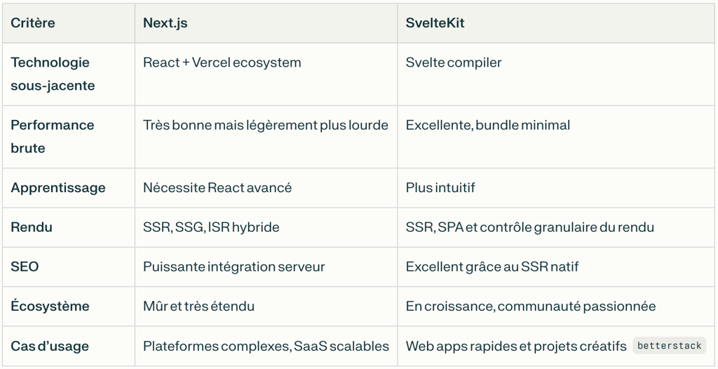 Next.js vs SvelteKit : comparaison 2025
