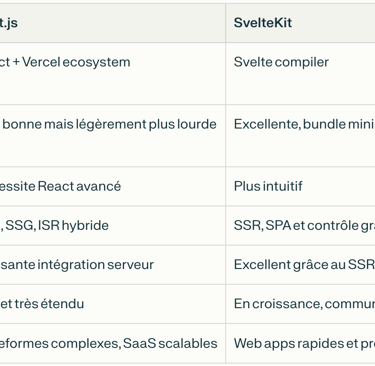 Le plus important ? Penser scalabilité : un site SaaS ou e‑commerce de grande ampleur bénéficiera souvent de l’écosystème Next.js, tandis qu’un MVP rapide ou une web app moderne sera plus efficace avec SvelteKit.
